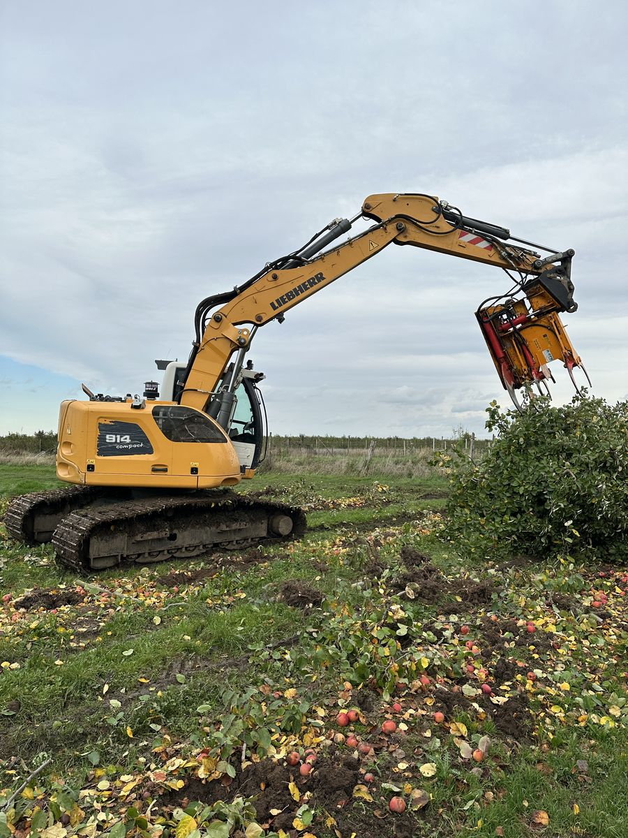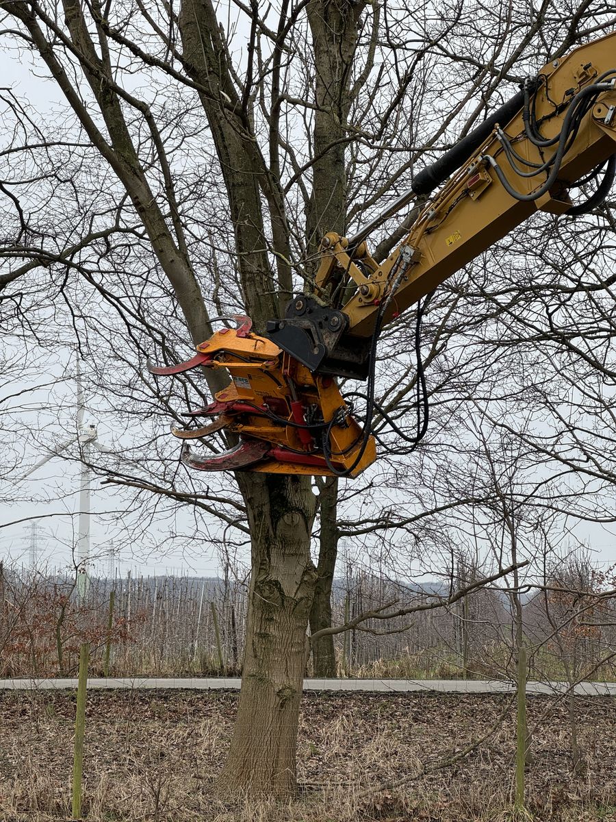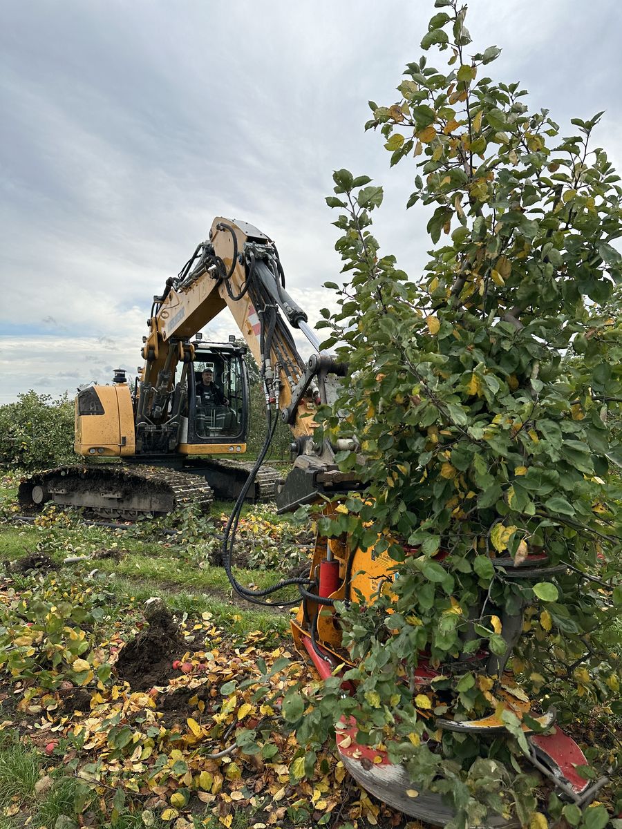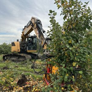 - Rodung von Obstanlagen mit Bagger und Fällzange.