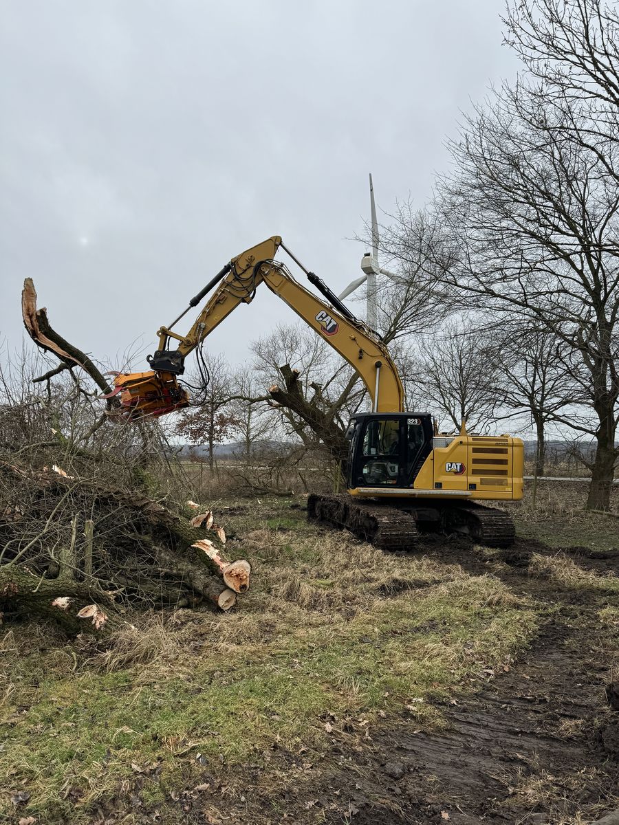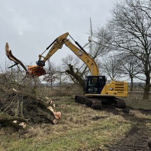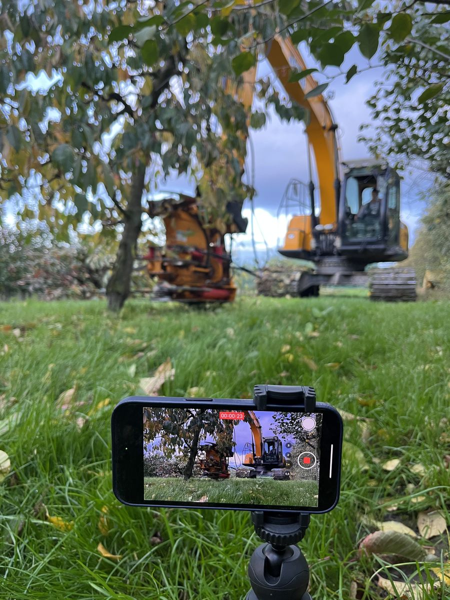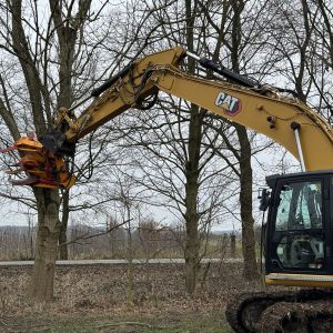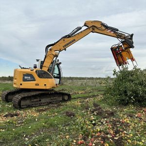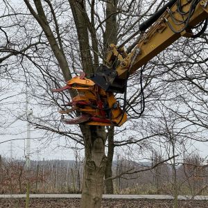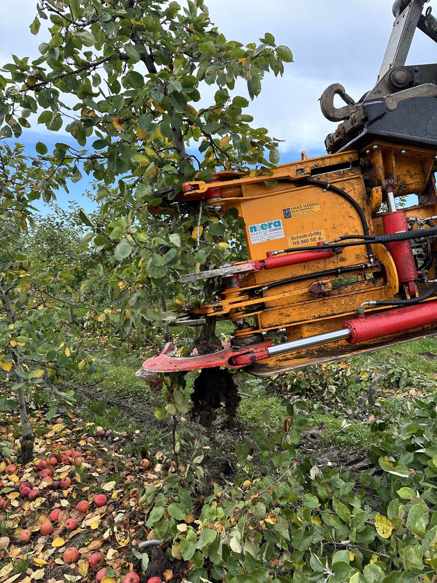 - Rodung von Obstanlagen mit Bagger und Fällzange.