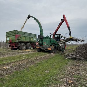 - Zerkleinerung von Obstanlagen mit Forstmulcher.