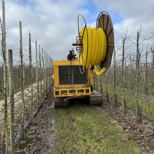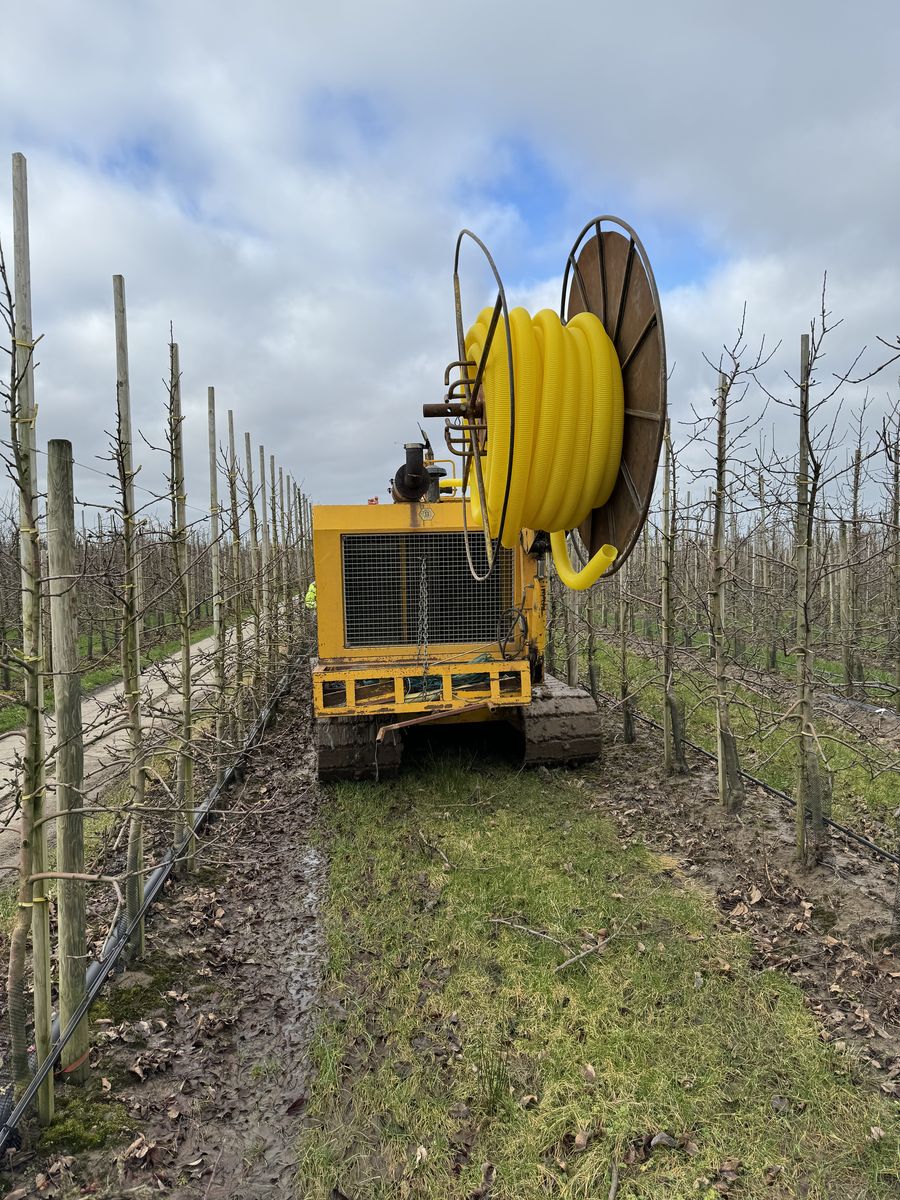 Das Lohnunternehmen Pape bietet umfangreiche Leistungen für Obstbaubetriebe, die von der Rodung alter Anlagen über präzise Vermessung bis hin zur Einrichtung moderner Bewässerungssysteme reichen.
