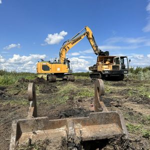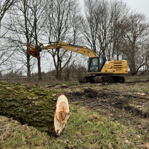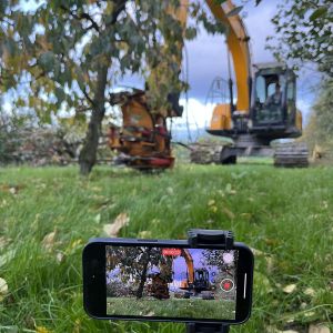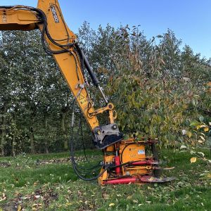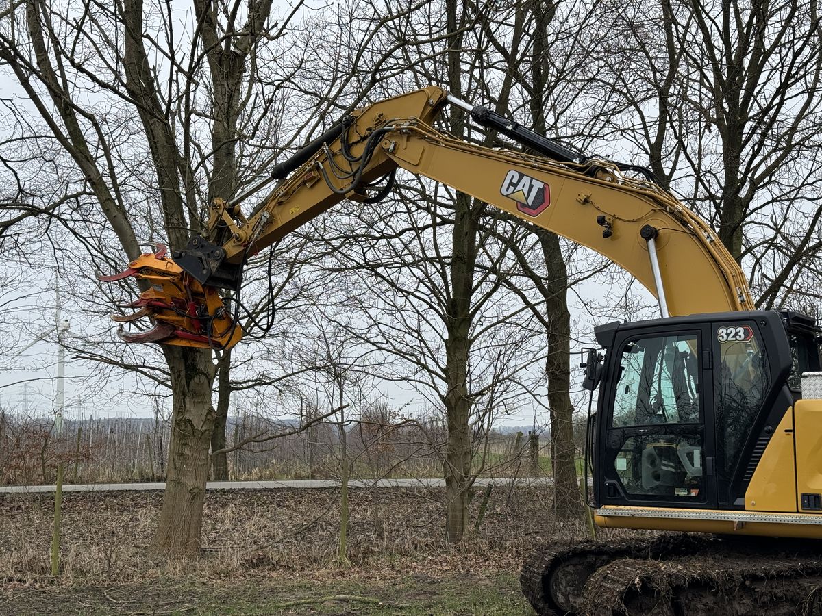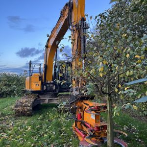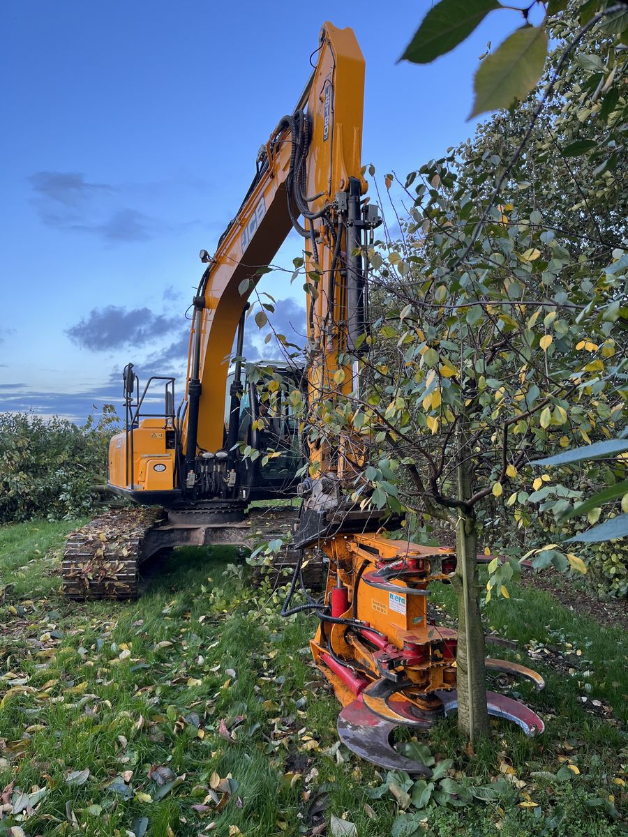 - Rodung von Obstanlagen mit Bagger und Fällzange.